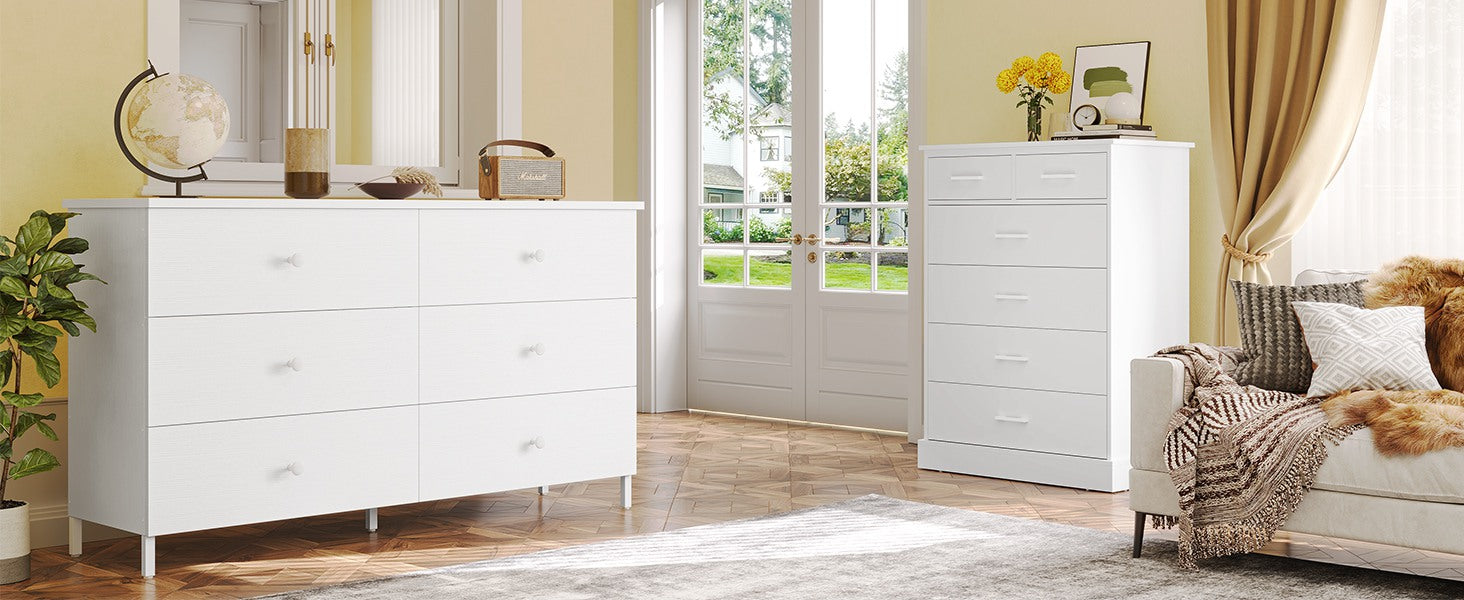 •【Every Corner Needs It】Modern large capacity 6 drawers double dresser has a sleek look and can be put in any corner of the home to play a role. Use as a dressing table in the bedroom, a nightstand next to the bed, a closet to store clothes, a storage cabinet in the living room, a toy storage cabinet in the nursery or to store take-out items in the entryway. This practical and beautiful cabinet is a great gift for family or friends!