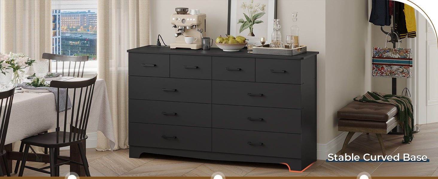 Hasuit | 55.1 Inch Wide 10 Drawer Dresser Large Chest of Drawers with Charging Station Wide Storage Clothes Closet Organizer