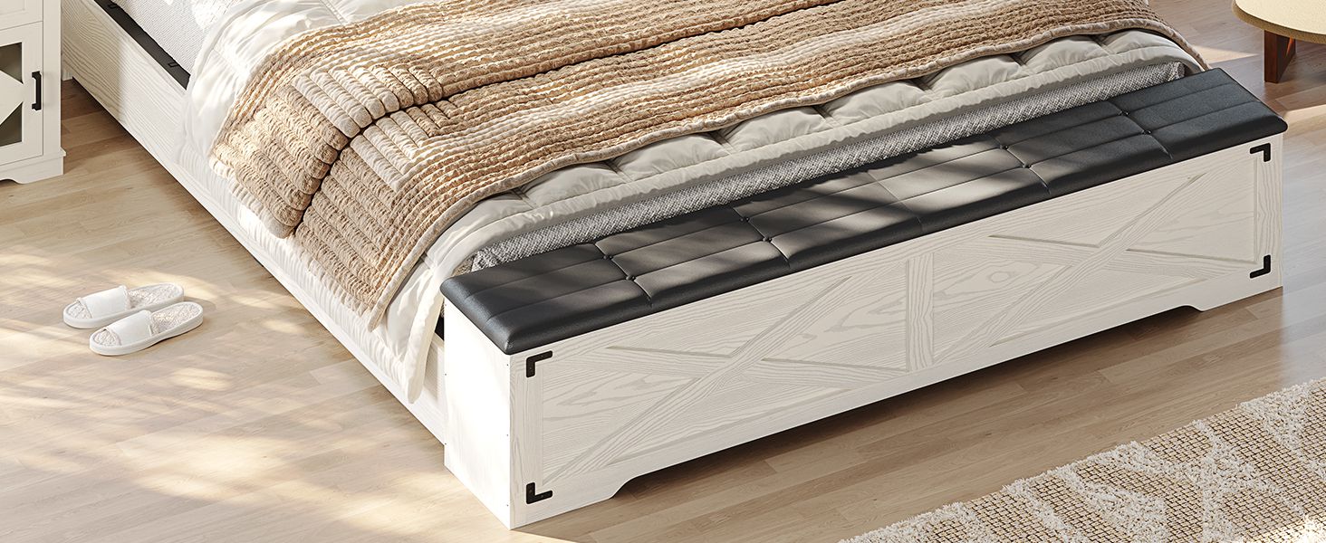 •【Storage Bench】The queen-size bed frame has a padded storage bench with plenty of storage space. You can store seasonal clothes, sheets, and quilts. When you don't want to mess up your sheets and quilts, you can sit on it and rest.