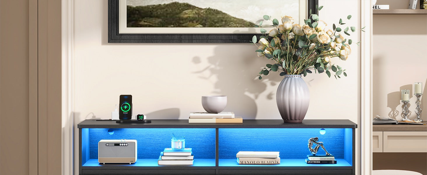 Hasuit Dresser with LED Lights and Charging Station