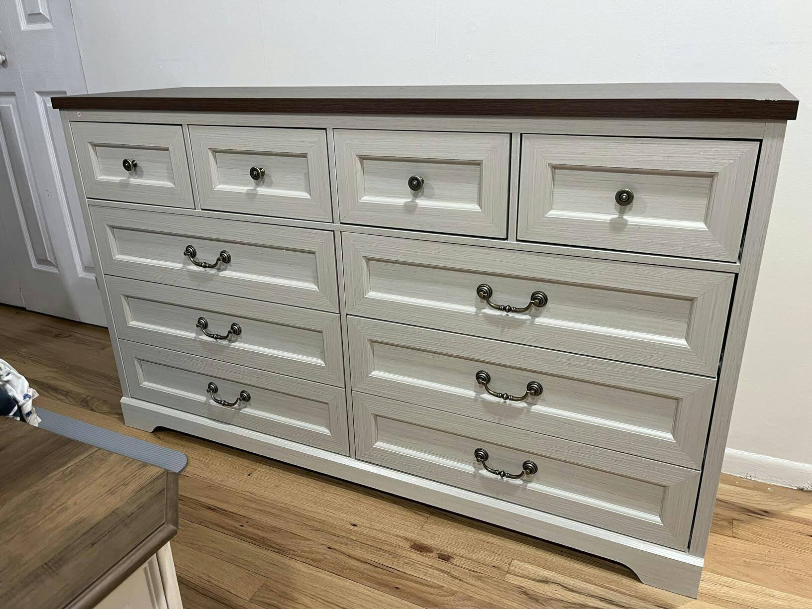 • Spacious Storage: 55.1"W × 32.3"H × 15.8"D dresser with 10 drawers (6 large, 4 small) for organized storage.