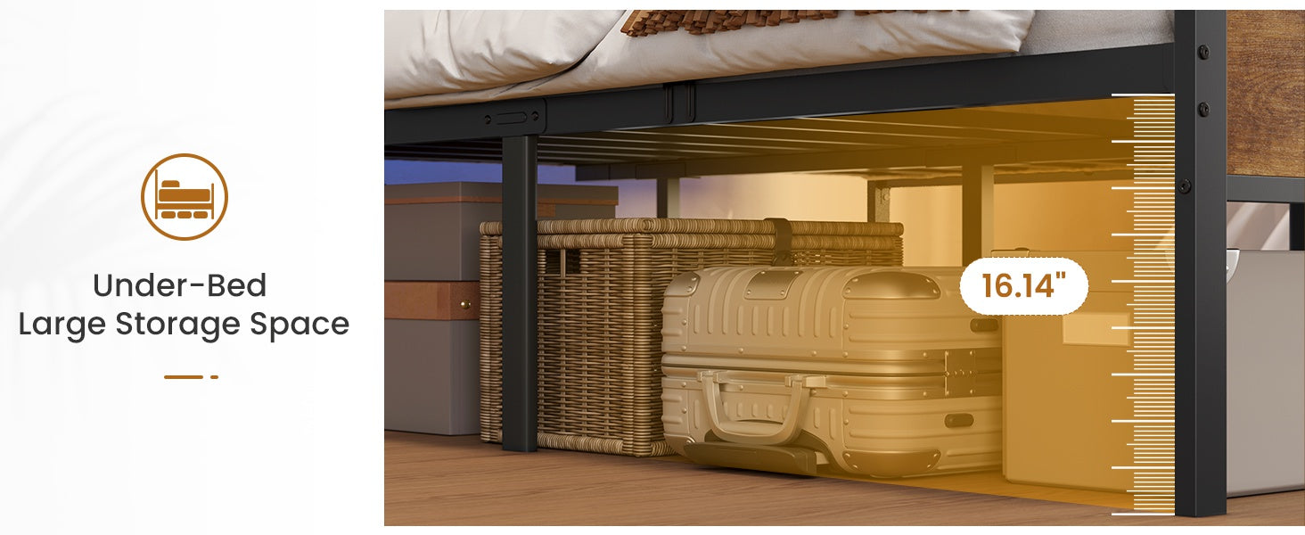 • Ample Under-Bed Storage: 16.4" clearance for suitcases, bins, and robot vacuum access.