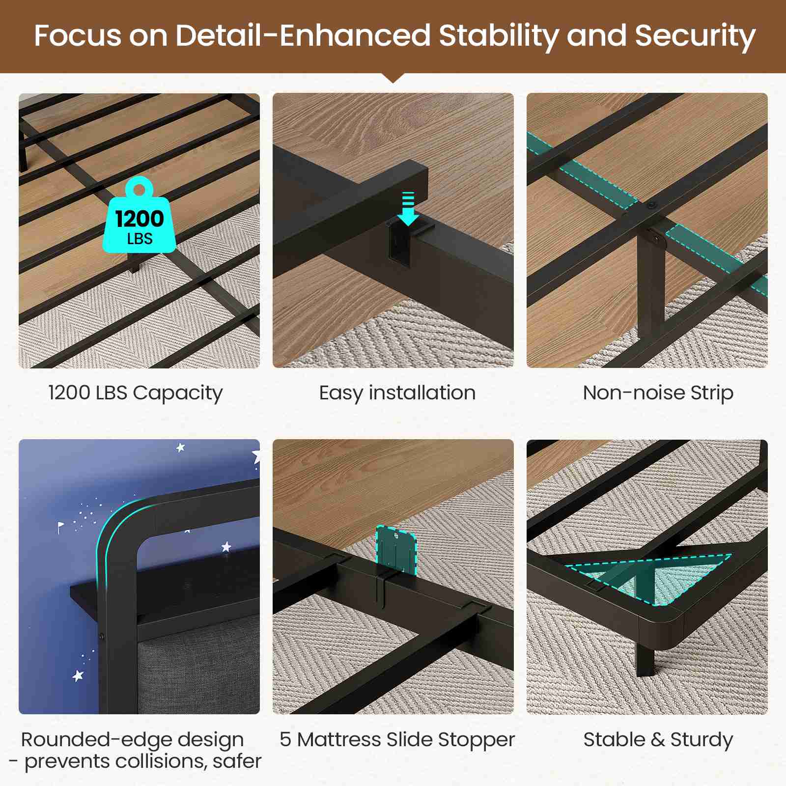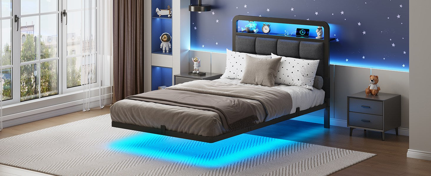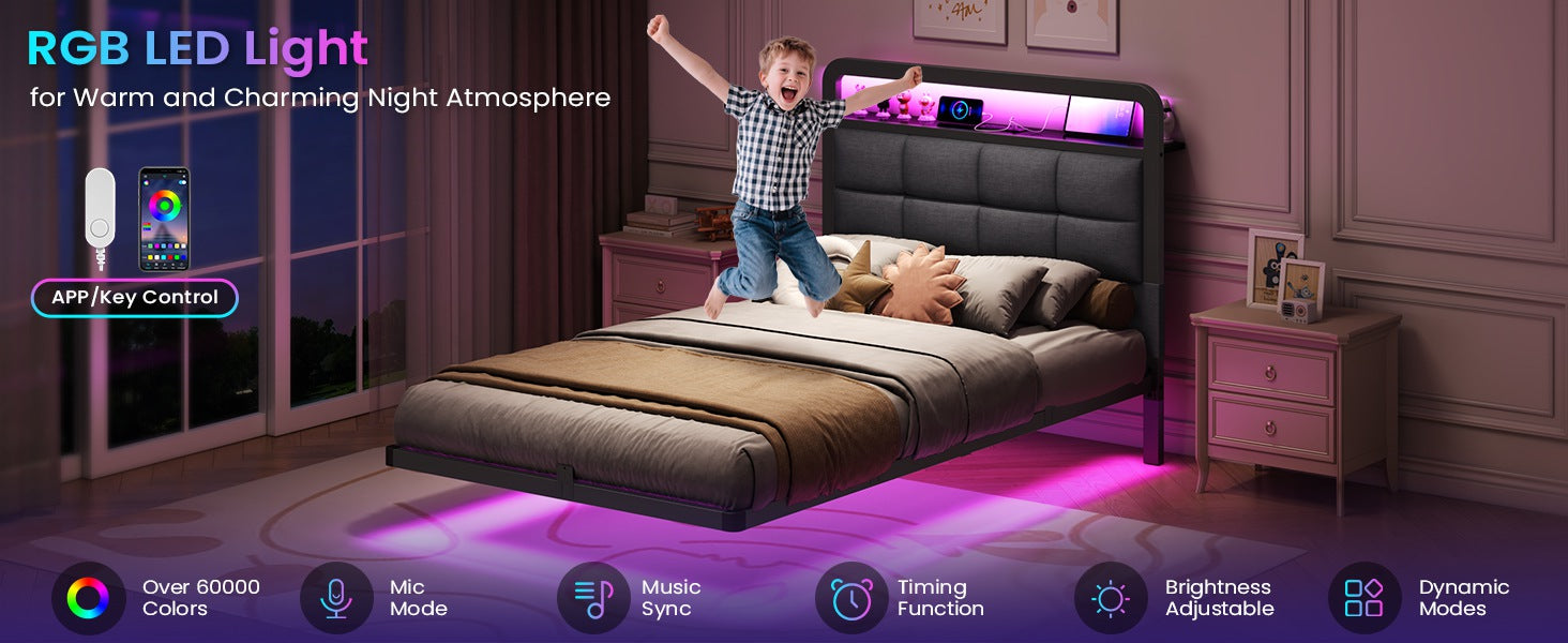 •【Multi-functional RGB LED Lights】The built-in strip lights illuminate both headboard and under-bed areas, featuring colorful RGB lights, which can be adjusted via APP(over 60,000 colors available), adding more fun and personalized color to the bedroom.