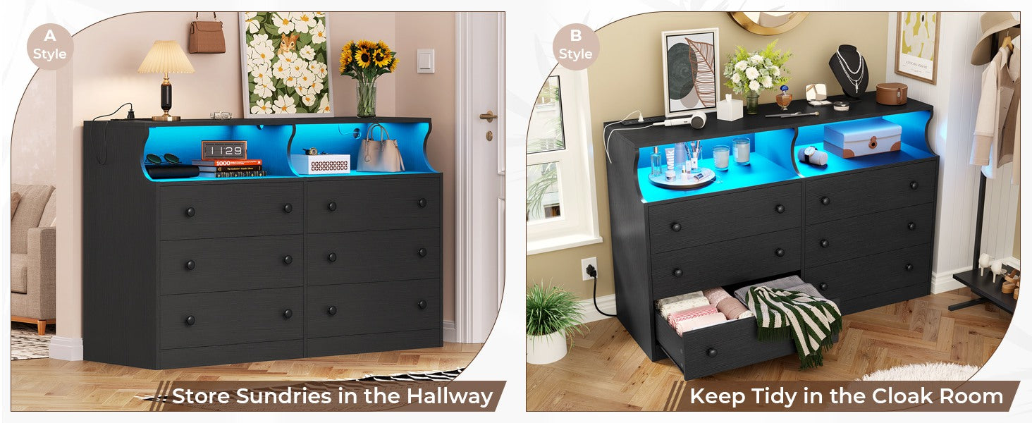 Hasuit 6 Drawer Dresser with LED Lights and Charging Station