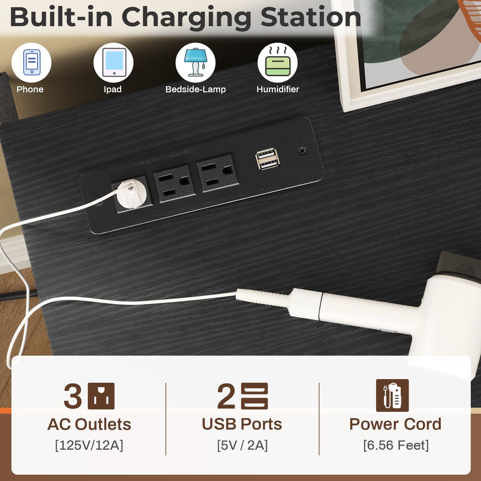 • Built-in Charging Station: 3 outlets + 2 USB ports with 6.56ft cord.
