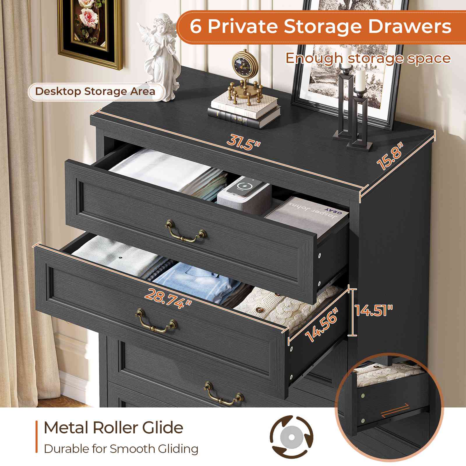 • Spacious Storage: 51.3"H x 31.5"W x 15.8"D6 deep drawers + wide tabletop.