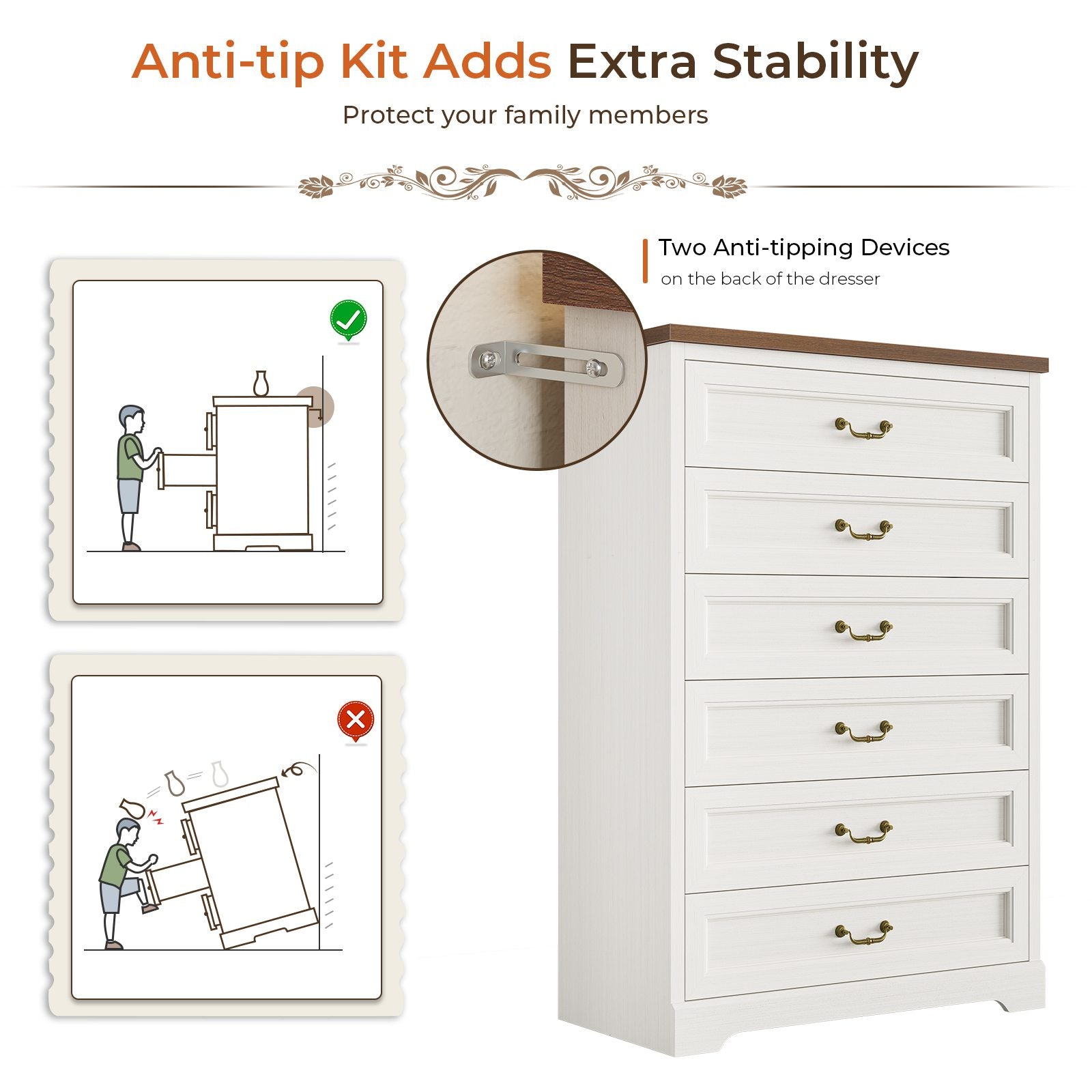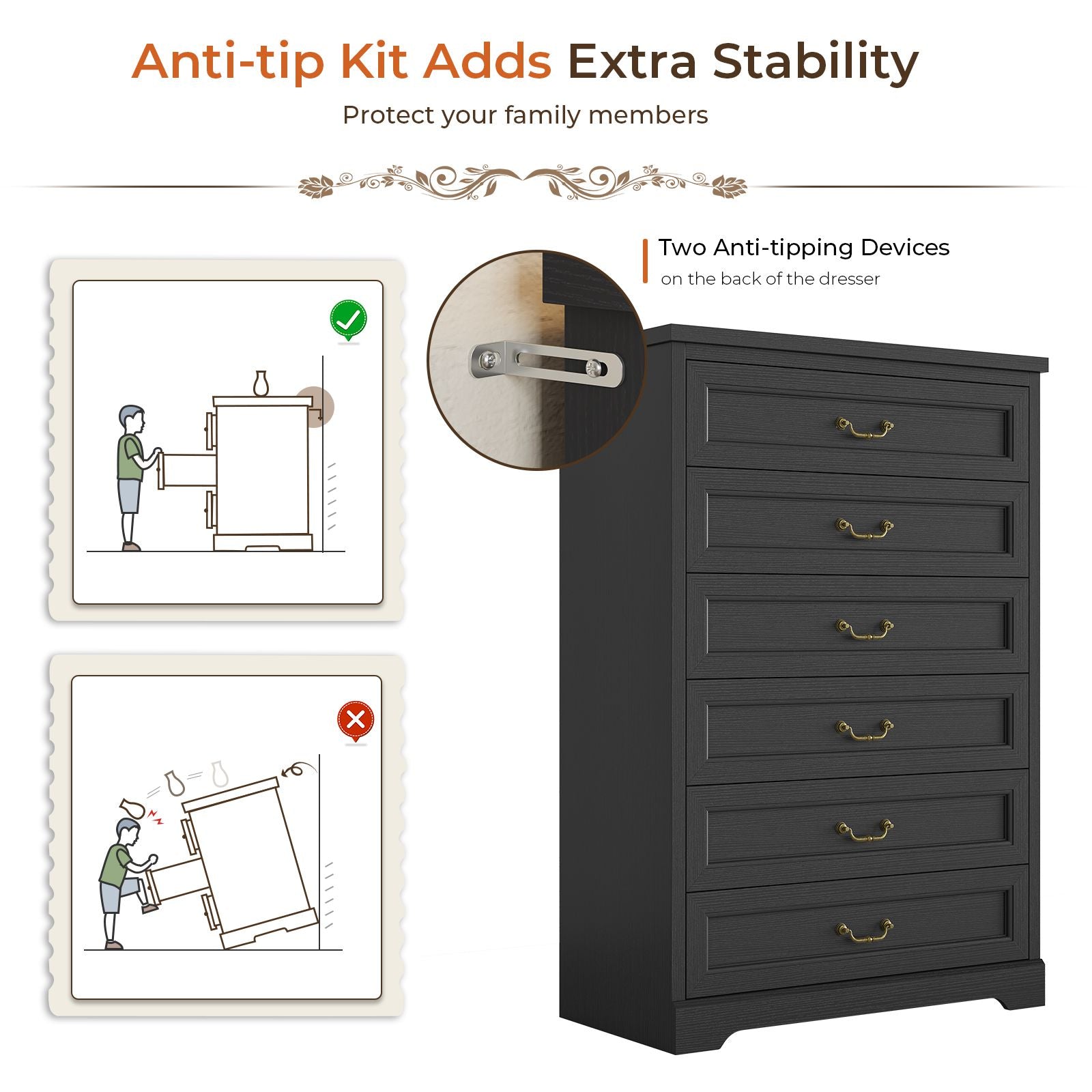 •【To Serve You Better】Your 6 drawers dresser will be safely packed in a box with protective foam to ensure maximum protection against shipping damage. It require self-assembly, and the package contains detailed instructions and accessories, tools, and all parts are labeled one by one. If you have any questions or concerns about our products before or after purchase, please feel free to contact us, we are always at your service.