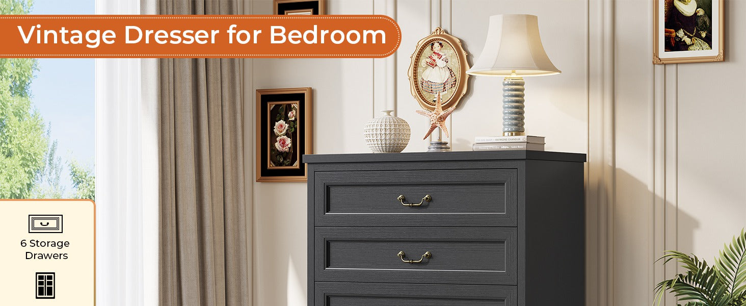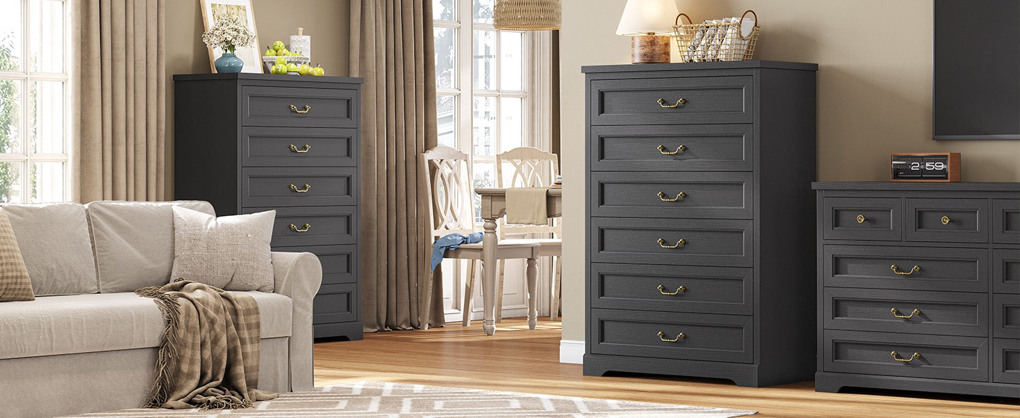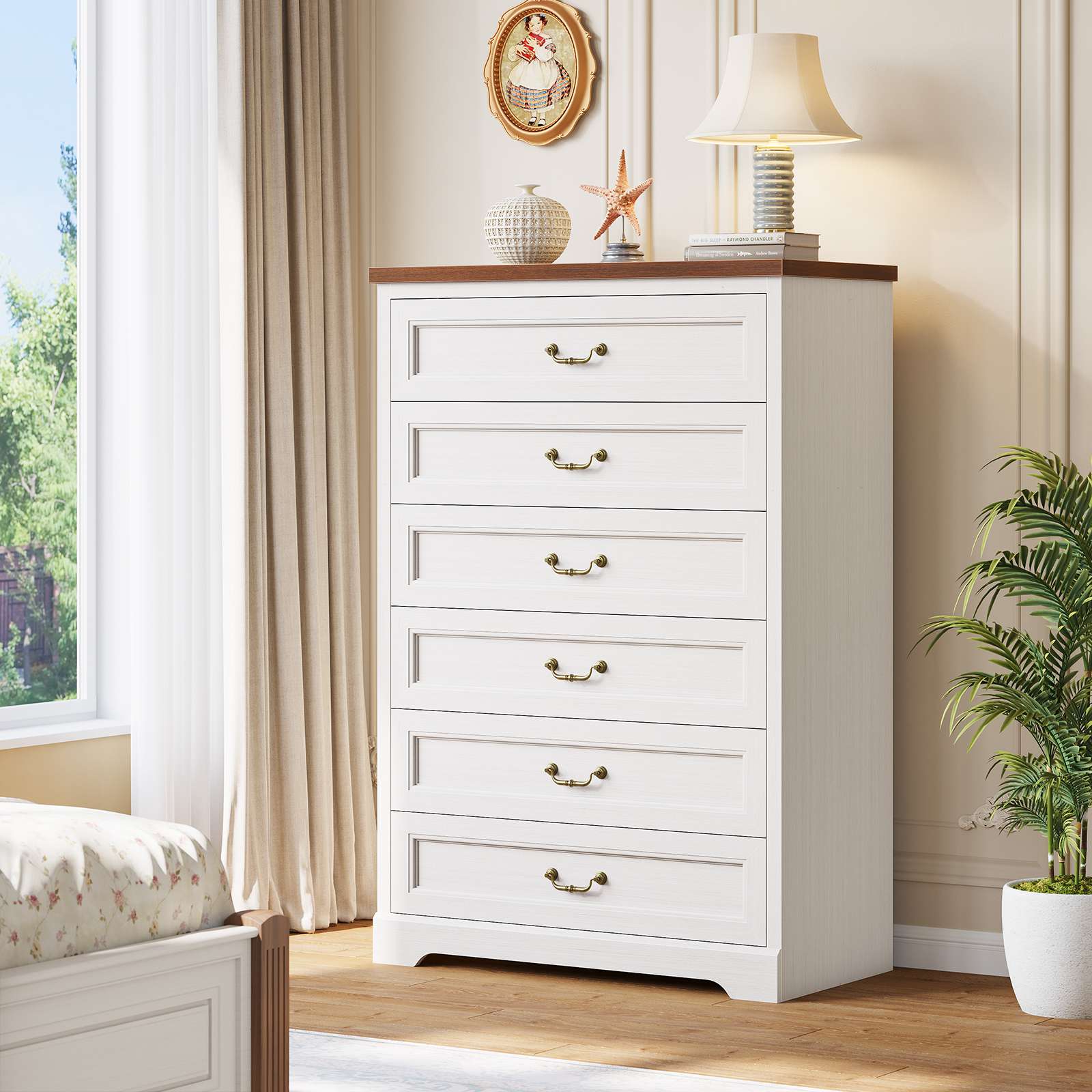 •【Large Multifunctional Dresser】This rustic-style 6 chest of drawers offers various placement options for your room. Beyond being a storage cabinet in the bedroom, it serves as a entryway dresser to put daily items and overflow, as a baby dresser to store diapers, or as a storage locker in the living room for books, DVDs, decorations, etc. The classic farmhouse dressers are suitable for most styles of homes, can be integrated into different scenes, will easily meet your storage needs.