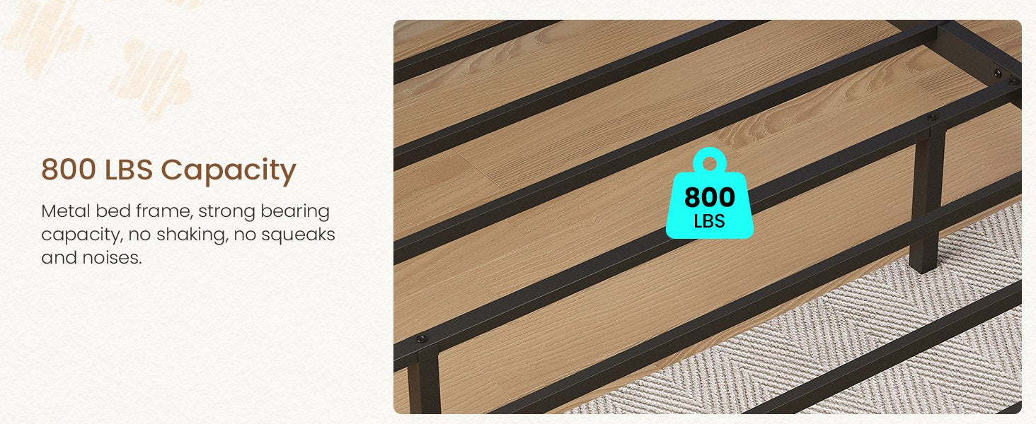 • Premium Build: Heavy-duty metal slats + reinforced frame (no box spring) with noise-reducing sponge strips.