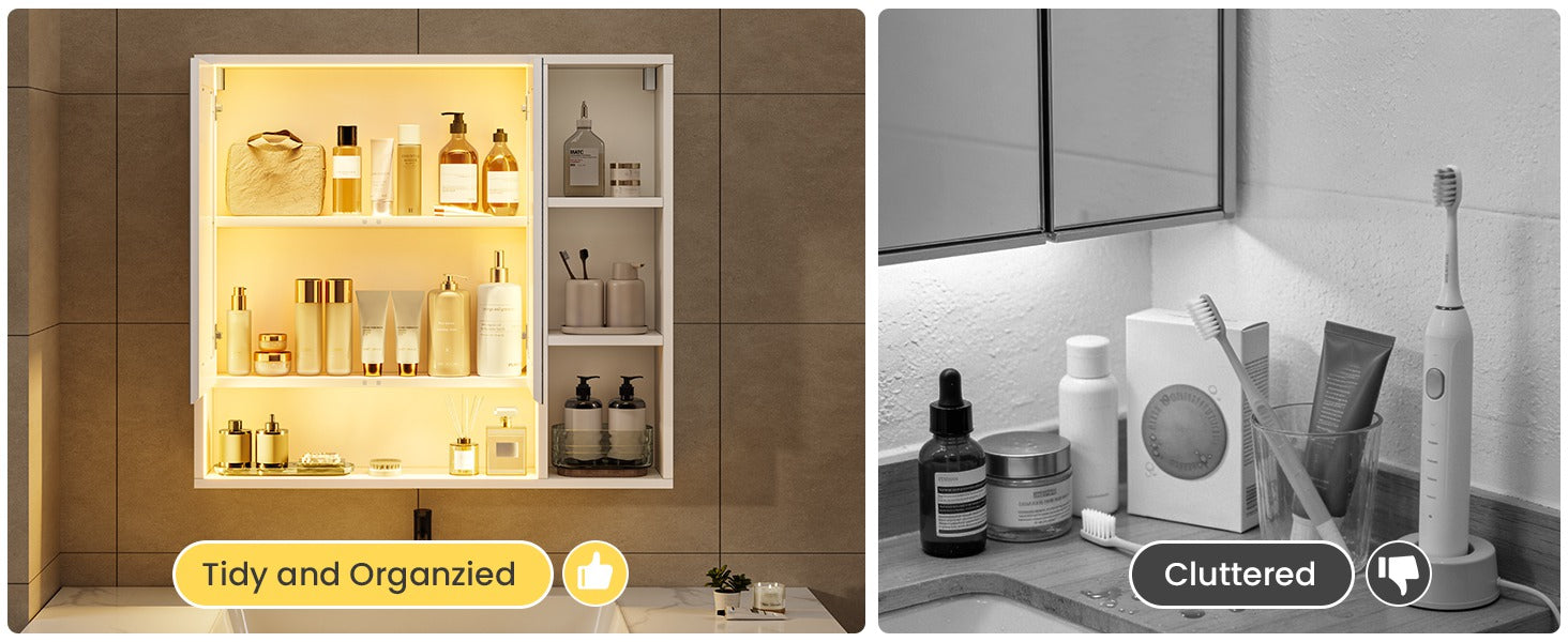 •【100% WARRANTY】If your mirror storage cabinet arrives damaged, scratched, or missing part, please feel free to contact us.
