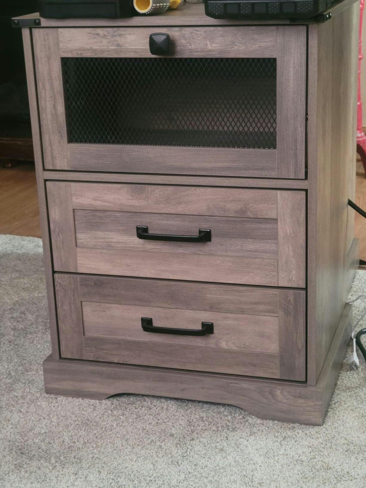 I've been searching and searching for good quality nightstands and came across this one. I would say when putting it together, the materials don't feel cheap or flimsy. Nice and sturdy. The drawers are decent in size but deep. The outlet works well. Definitely worth the money.