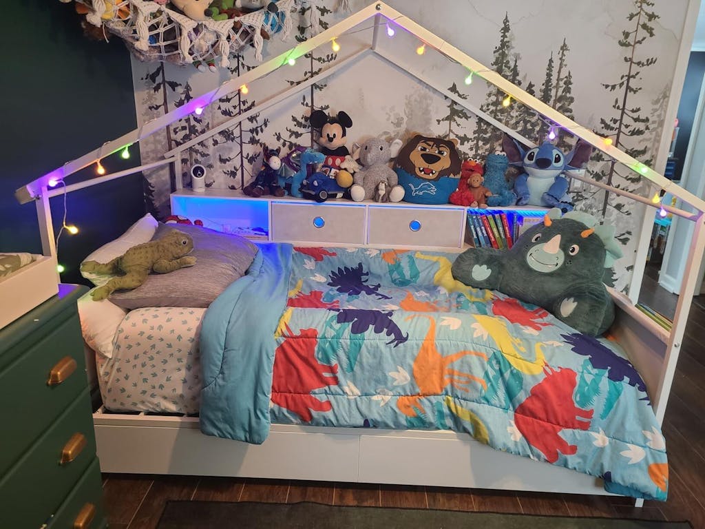 Absolutely love this bed frame! The built-in shelves are super practical, and the LED lights add such a cozy vibe. you can change the colors to match your mood. Stylish, functional, and just the right touch of fun!