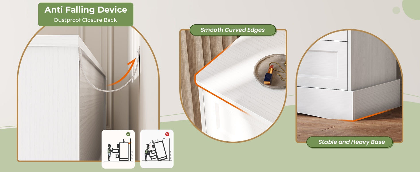 Durable & Stable: MDF wood, metal slides, thick back panel, anti-tip kit, middle support legs; sturdy, safe, long-lasting use.