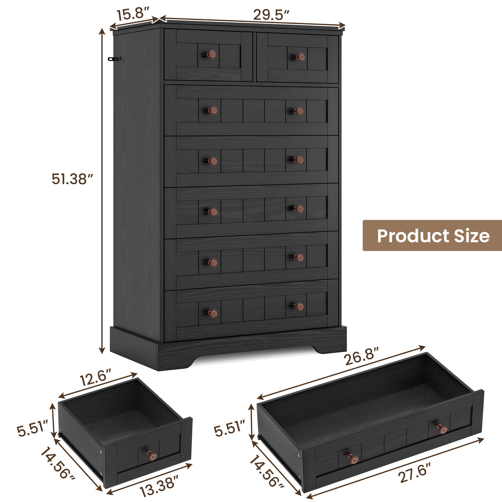 • Spacious Storage: 7 deep drawers, 51.4"H × 29.5"W × 15.8"D, ideal for organizing essentials.