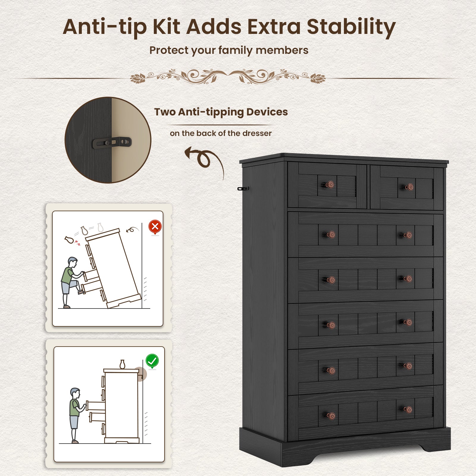 Large Capacity Storage Dresser with Tabletop Area and 7 Drawers