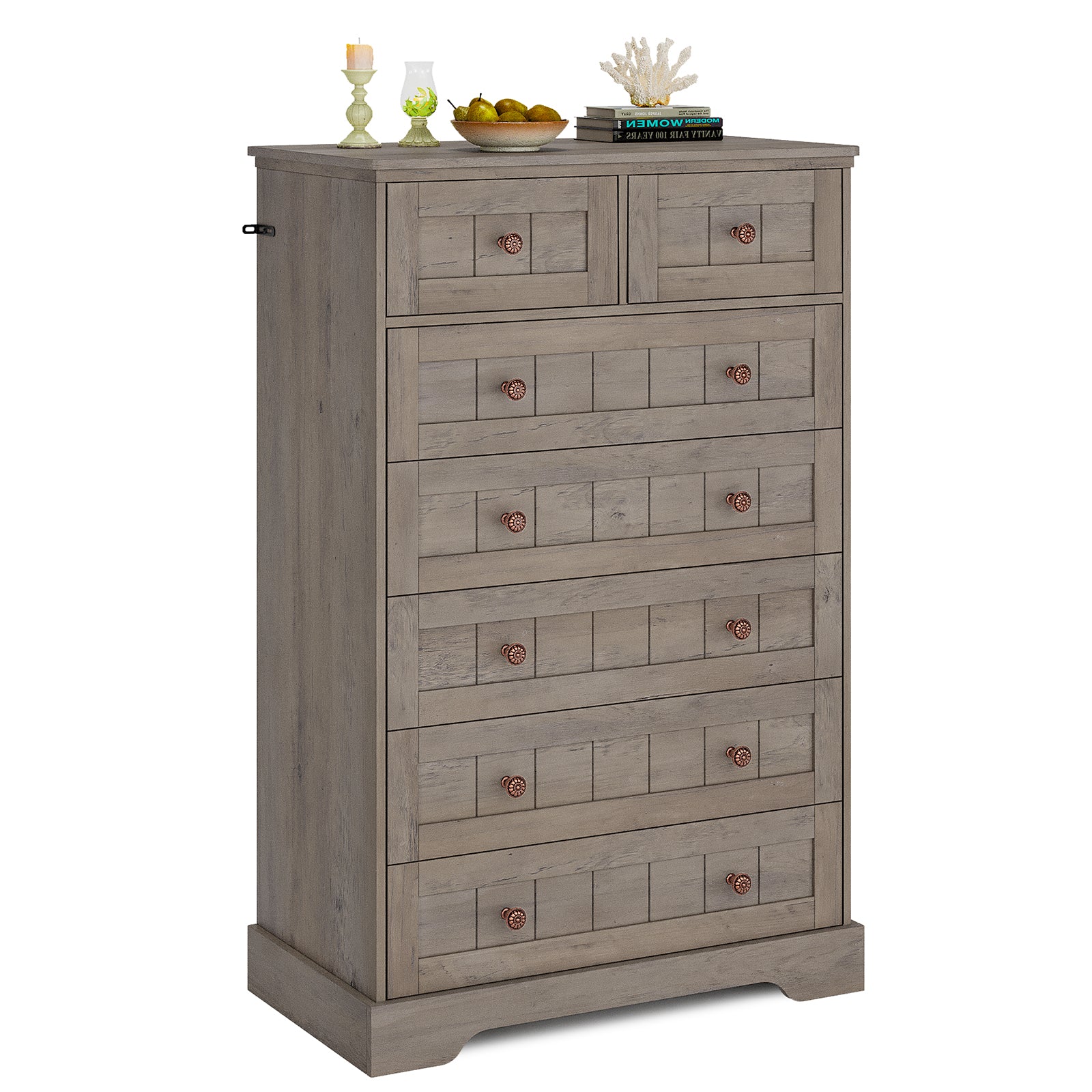 This Hasuit tall dresser exceeded my expectations. The rustic farmhouse look with embossed metal handles is stunning. All drawers slide smoothly and hold heavy items easily. The dresser feels solid and stable, and the finish is scratch-resistant and easy to clean. Great for bedrooms or even as an entryway storage solution.