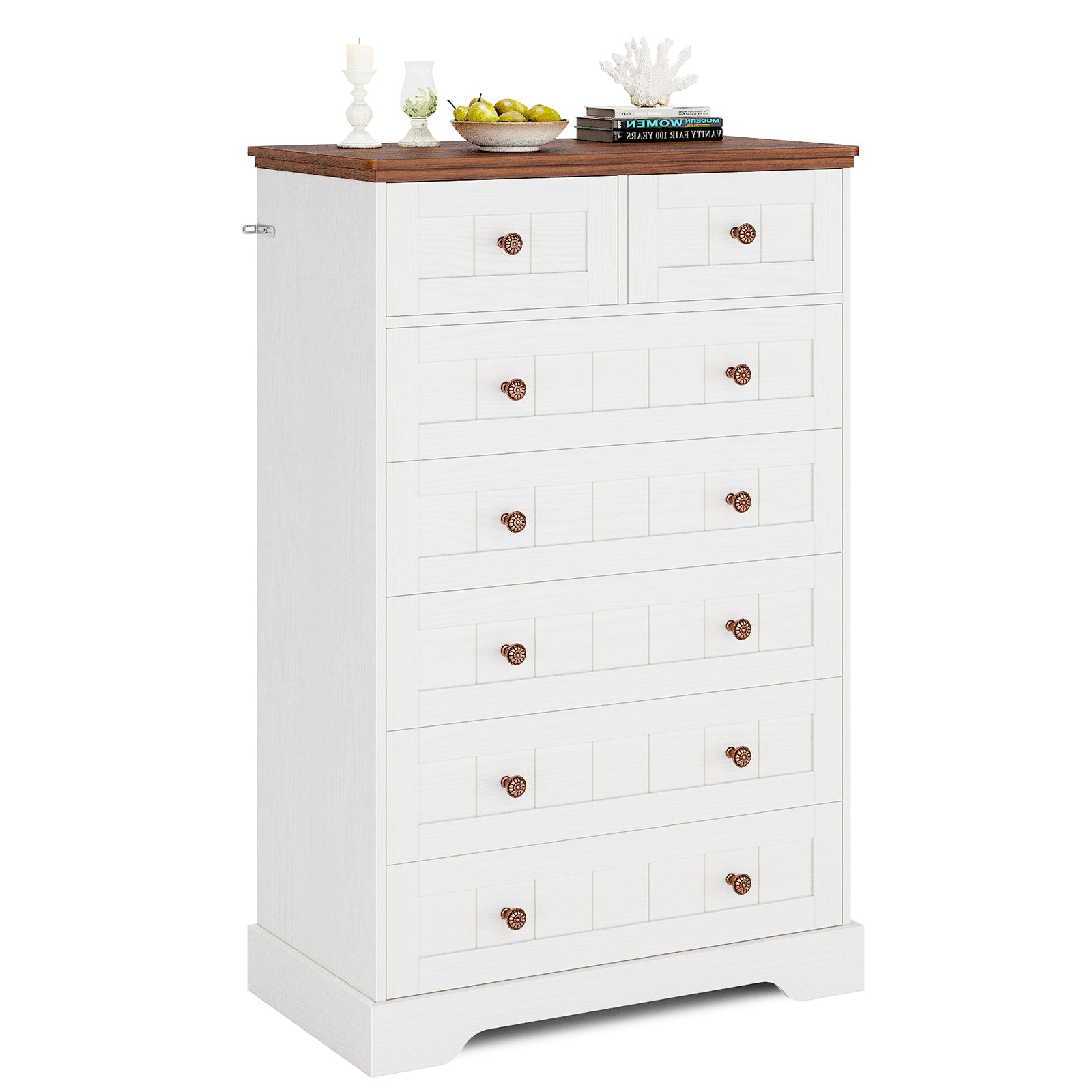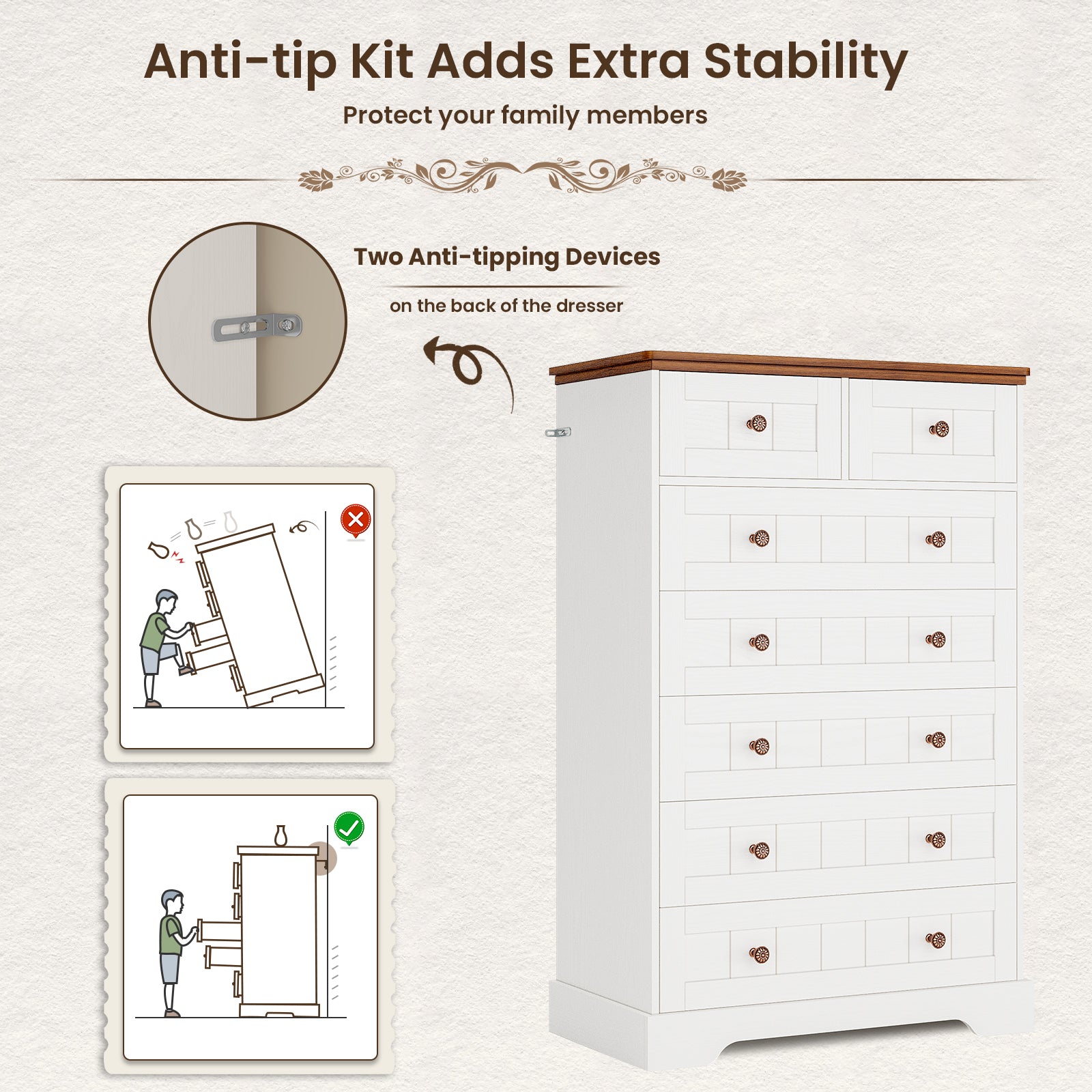 2 Size Drawers, 7 Drawers Dresser, Farmhouse Dresser, Round Edges, Safety Stop