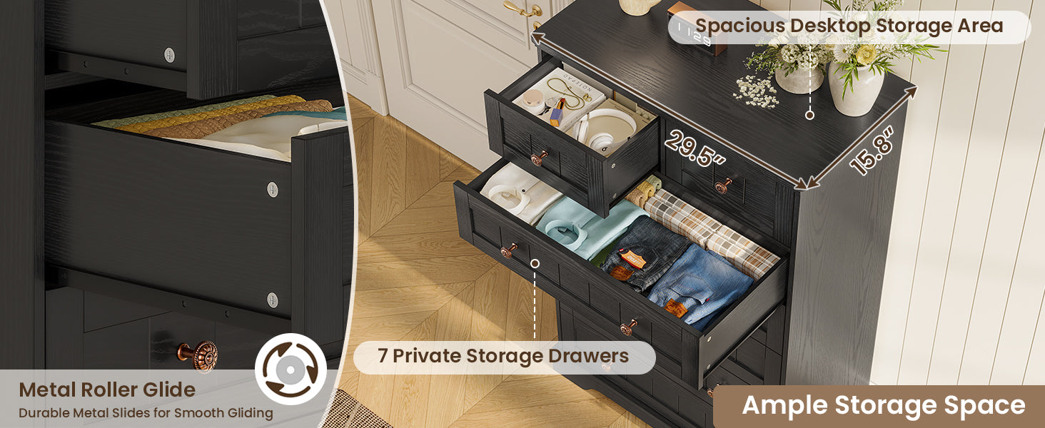 Large Capacity Storage Dresser with Tabletop Area and 7 Drawers