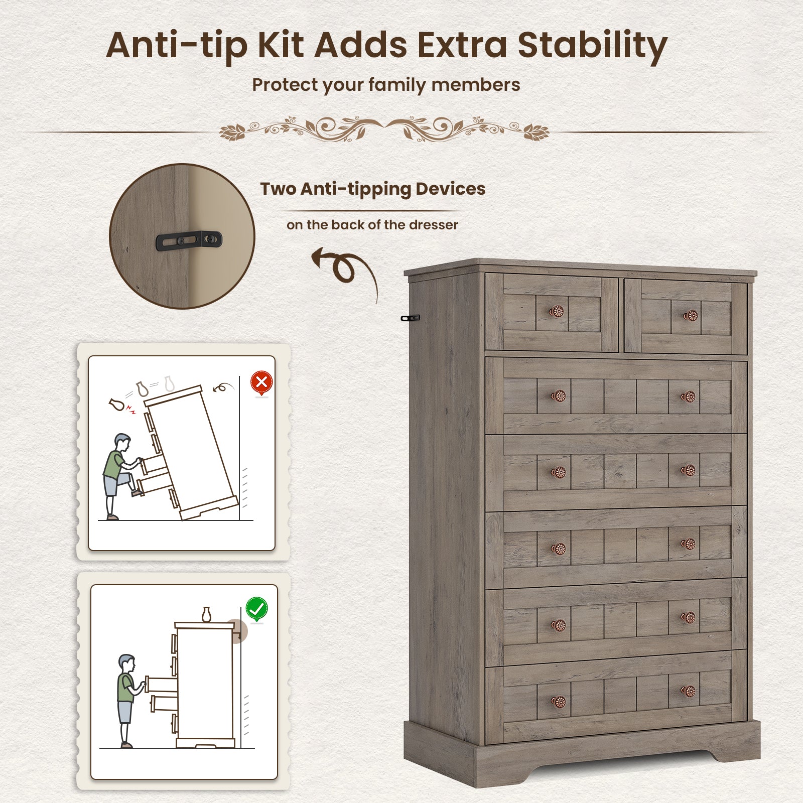2 Size Drawers, 7 Drawers Dresser, Farmhouse Dresser, Round Edges, Safety Stop