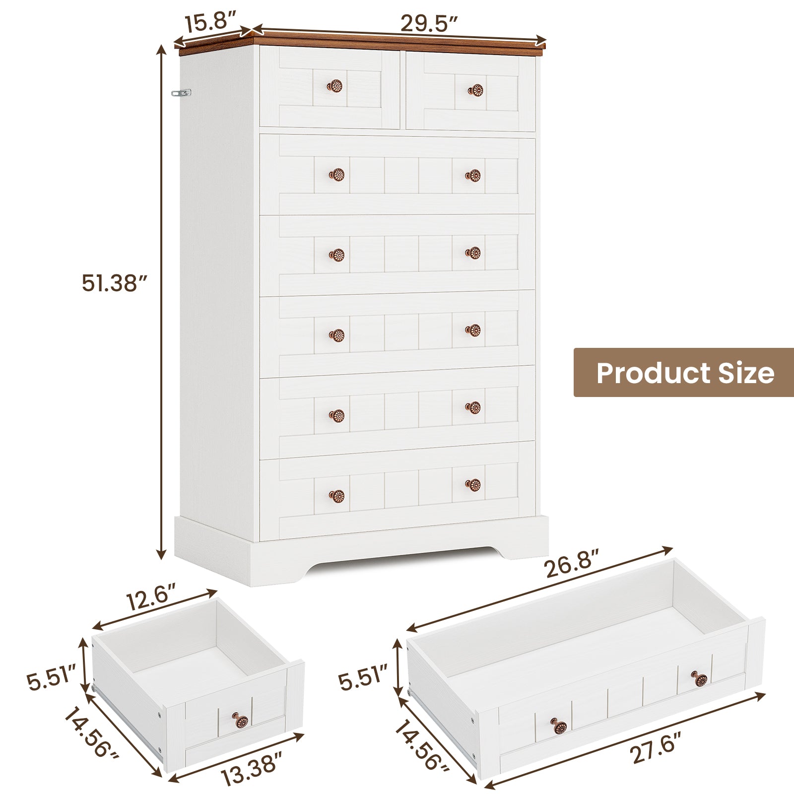 • Spacious Storage: 7 deep drawers, 51.4"H × 29.5"W × 15.8"D, ideal for organizing essentials.