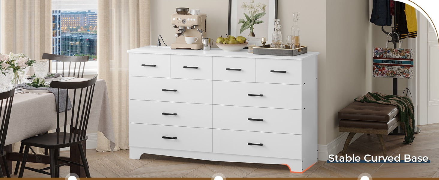 Hasuit | 55.1 Inch Wide 10 Drawer Dresser Large Chest of Drawers with Charging Station Wide Storage Clothes Closet Organizer