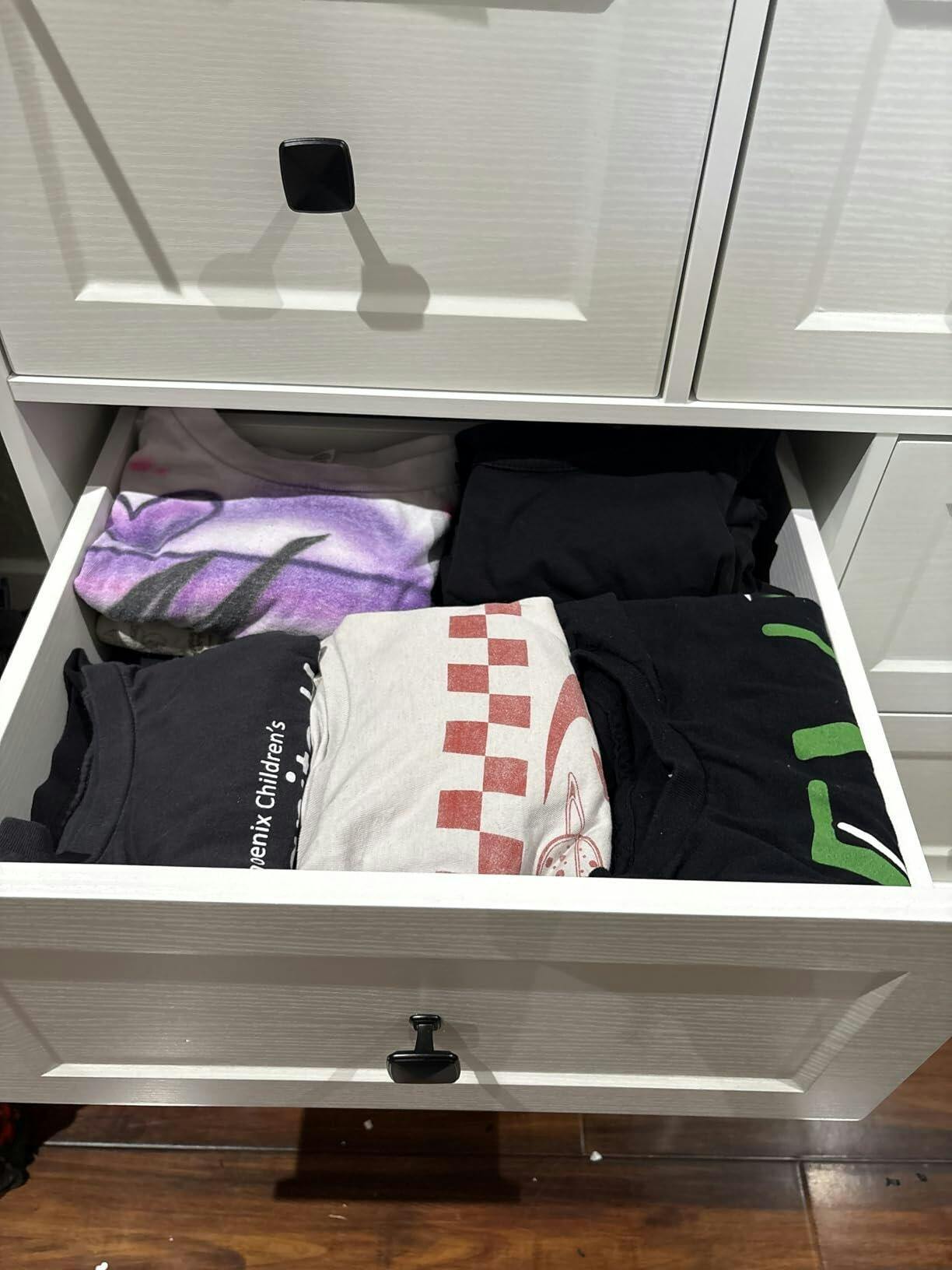 •【10 Drawers Bedroom Dresser】This black dresser for bedroom has 6 spacious large drawers and 4 small drawers, and two different sizes of drawers can easily classify and organize your items, very suitable for small families to organize and store clothes and toys, blankets or any other personal items. The wide tabletop at the top can serve as an dresser TV stand entertainment center or display your decorations, photo frames, plants, etc. to make your room tidier.