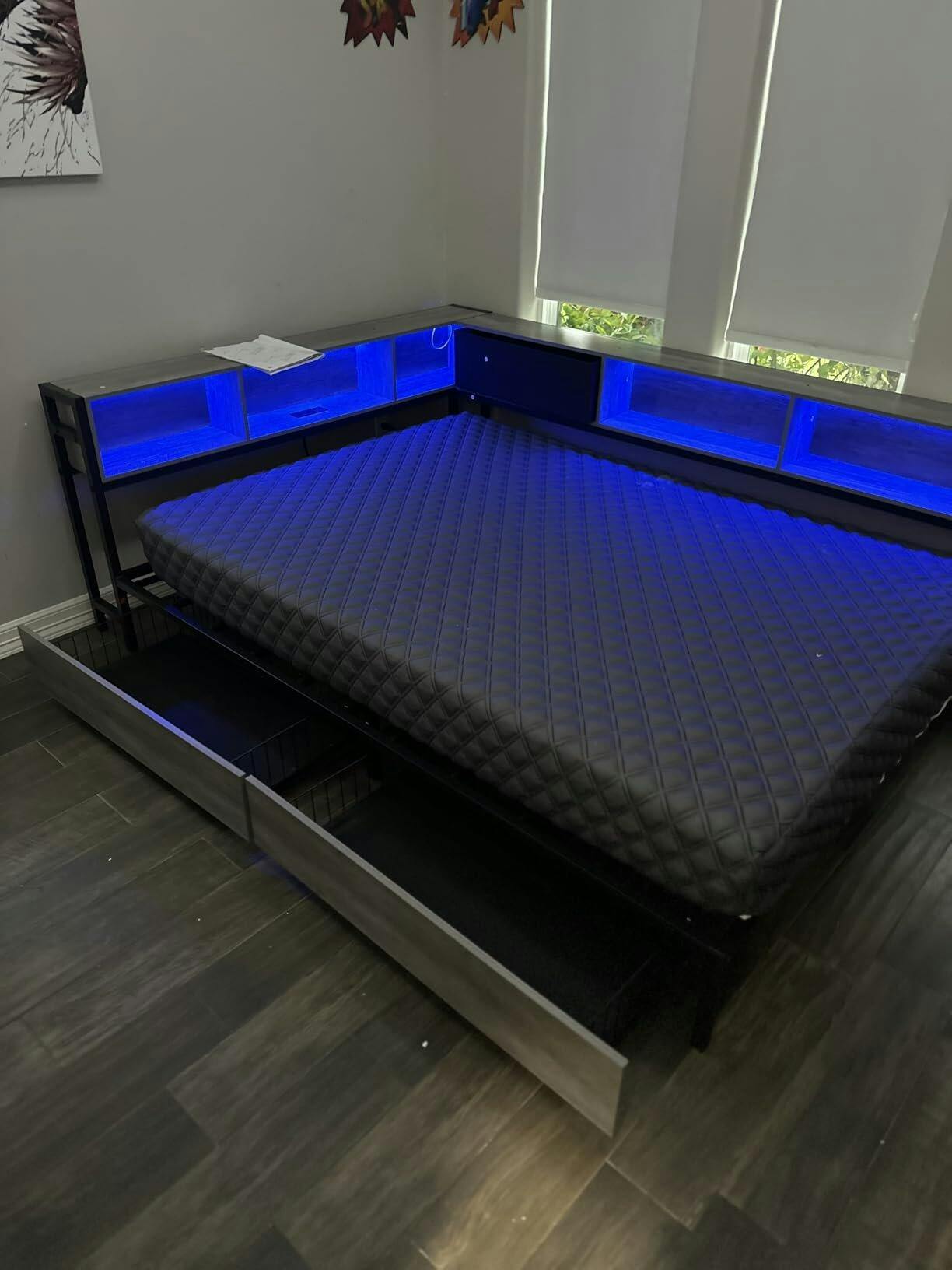 Hasuit Corner Bed Frame with with Lights & Charging Station