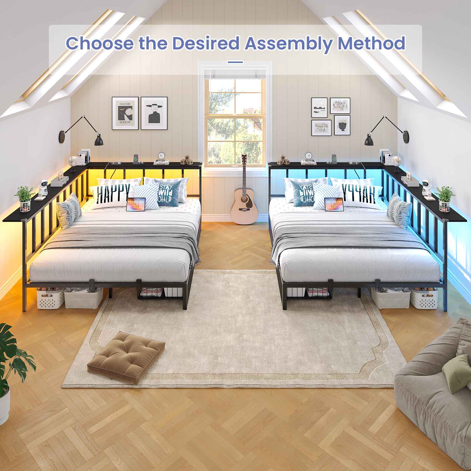 •【Multi-functional RGB LED Lights】The twin corner bed is equipped with light strips, which can be adjusted via APP(over 60,000 colors available), adding more fun and personalized color to the bedroom. You can also set the music, voice, and timing modes, to discover more wonderfully!
