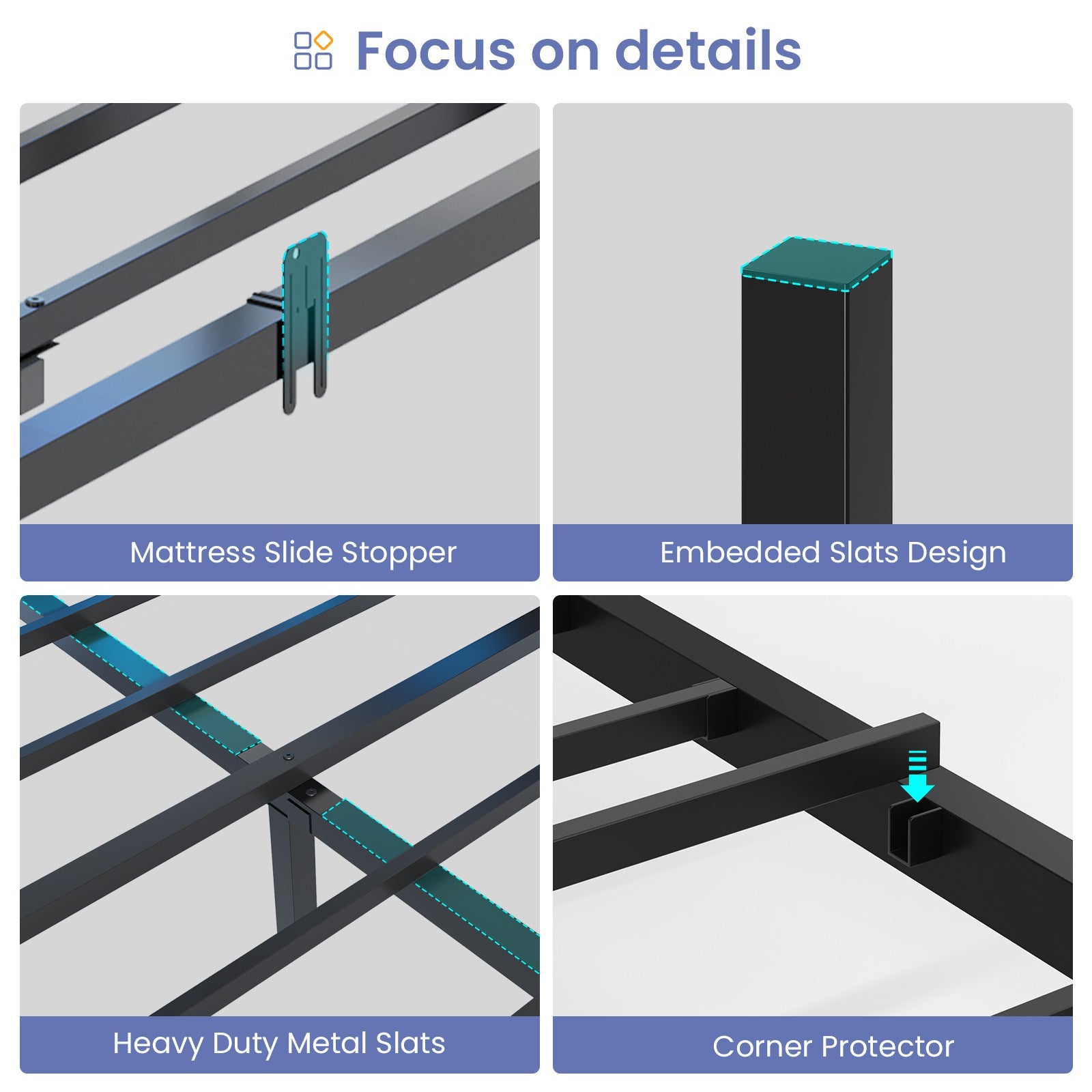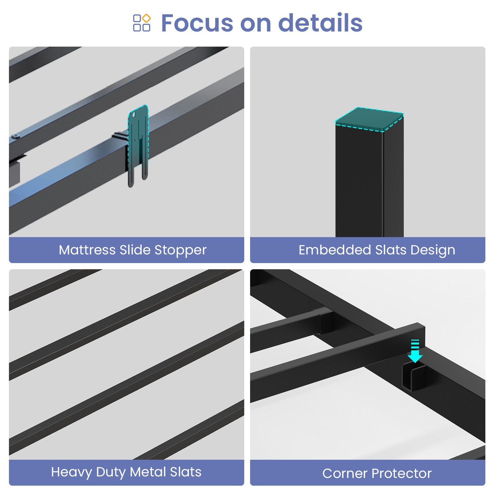 •【Mattress Slide Stopper & Plastic Corner Protectors】 Each corner bed is equipped with 2 mattress slide stoppers, effectively preventing frequent use of the mattress brought about by sliding; 4 exposed bed frame iron corner stickers affixed with plastic corner protectors to reduce the damage caused by bumping.