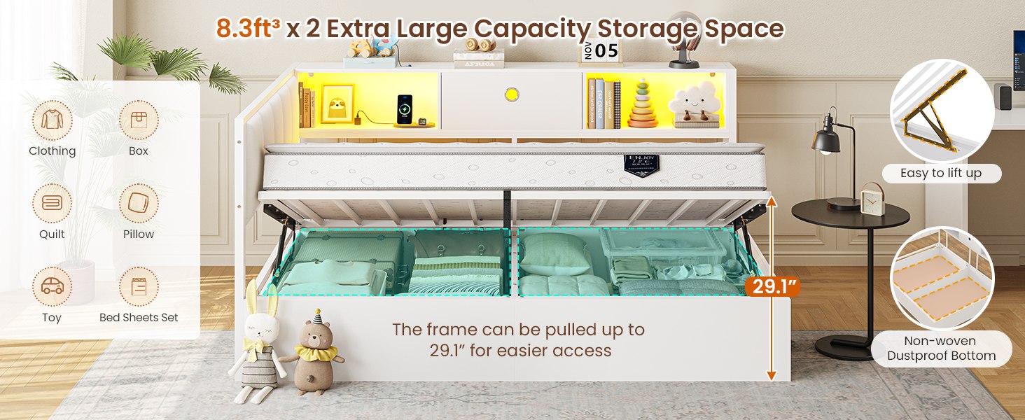 Design with Hydraulic Lift Offers Ample Under-Bed Storage Space