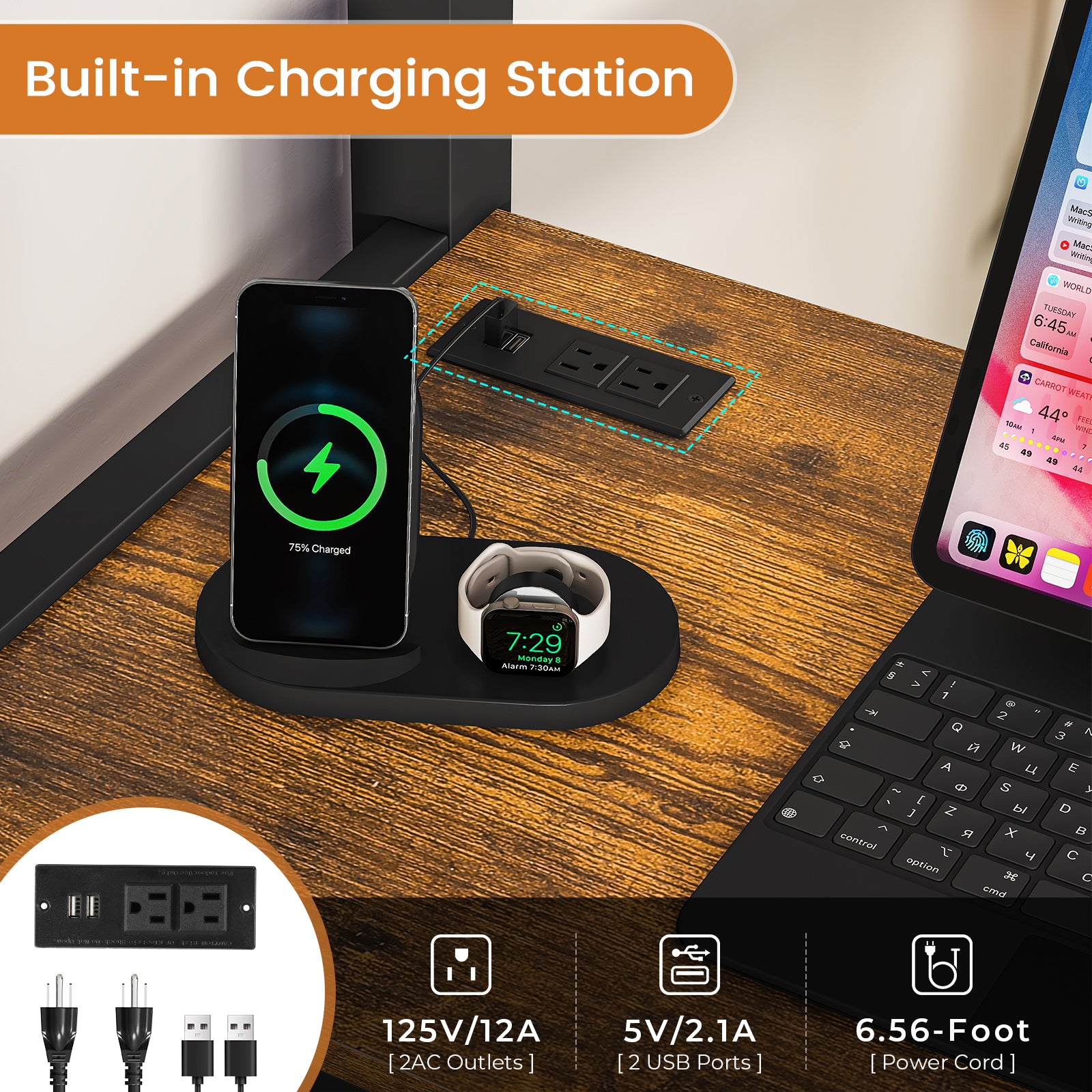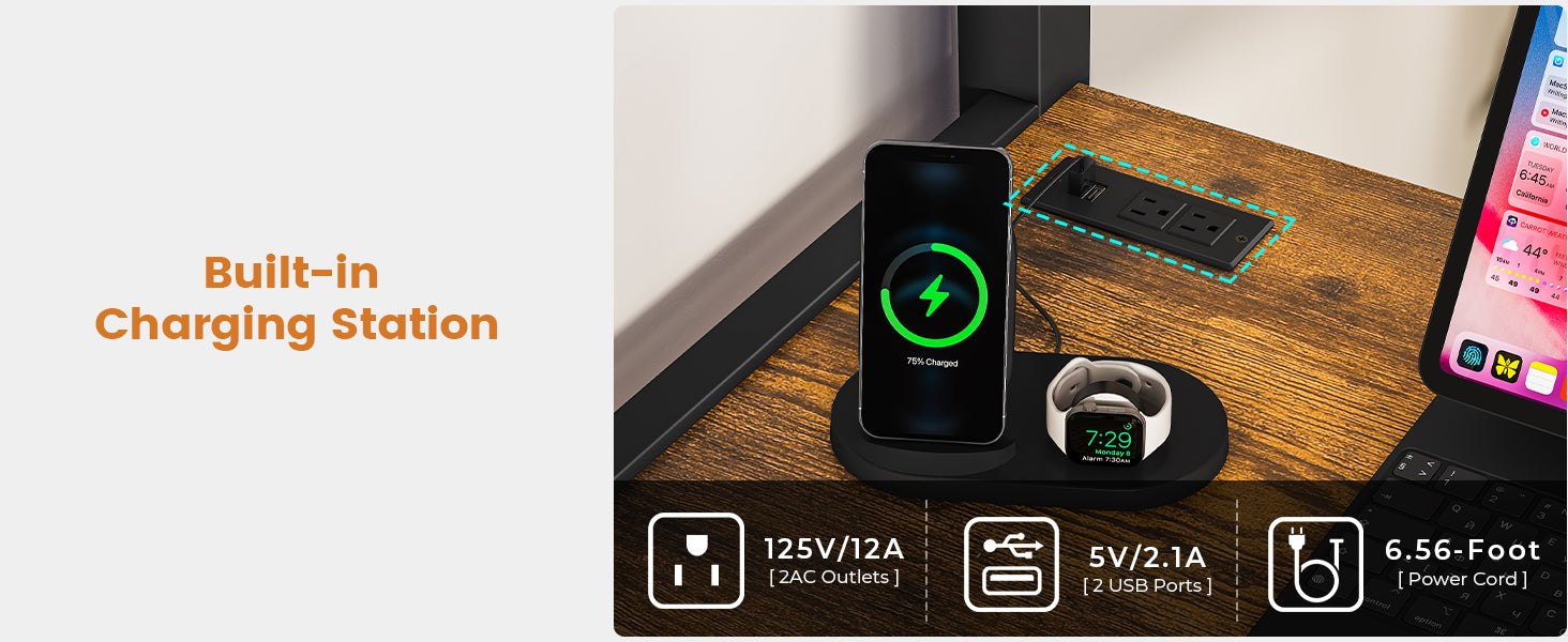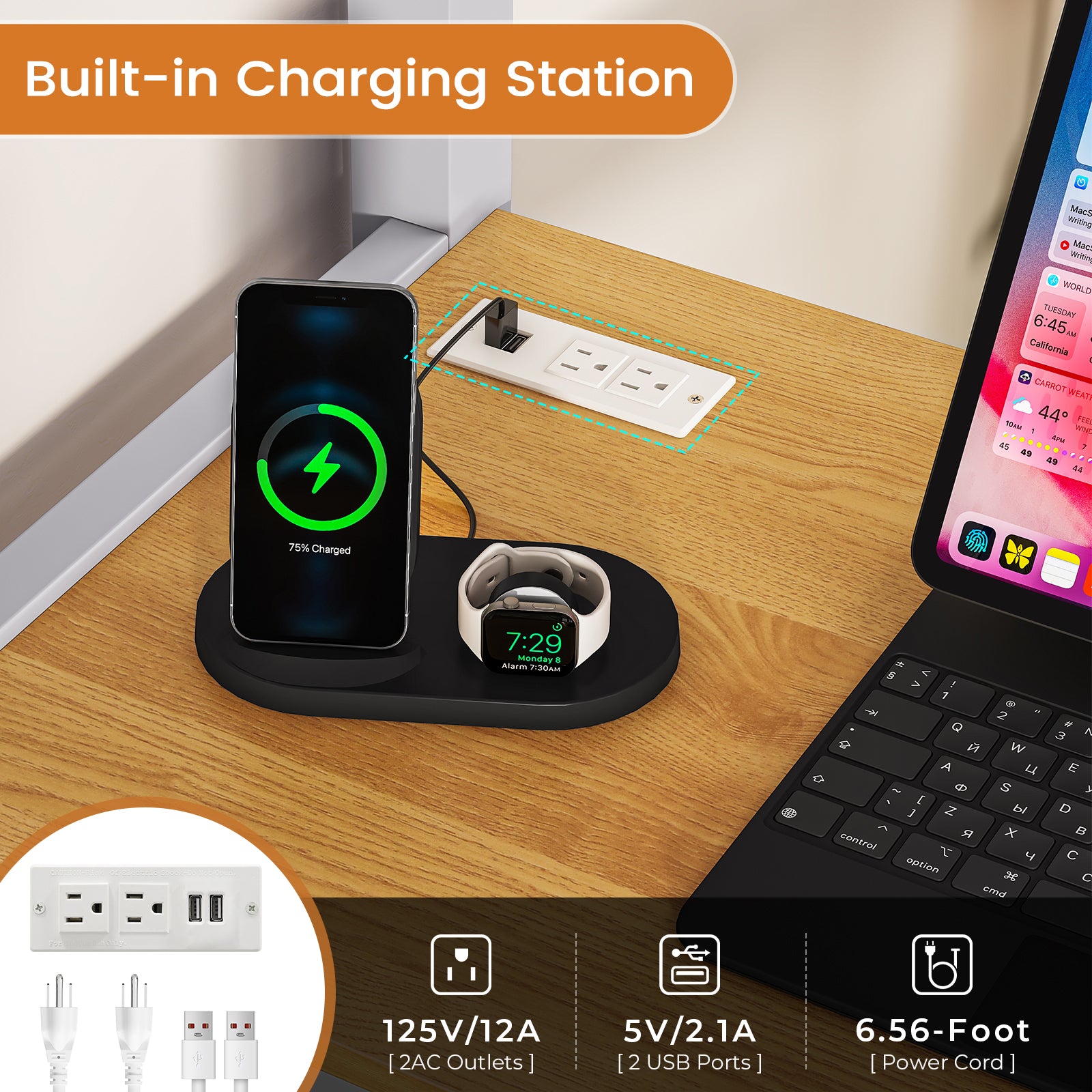 • Charging Station: Built-in power strip for lamps, laptops, and devices.