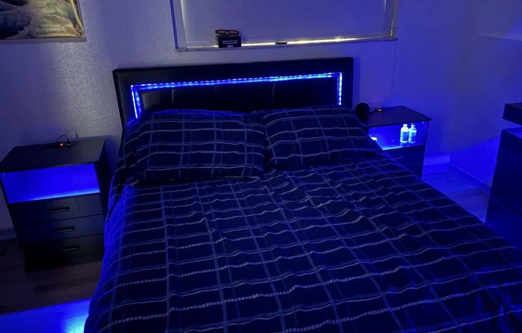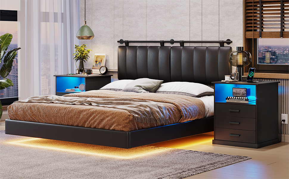 •【UNIQUE RGB LED LIGHT】This nightstand is lit up with some cool RGB LED lights. You can choose from a variety of colors and light patterns, and control the changes through an app or switch. It's a great way to add some modern romance to your bedroom.