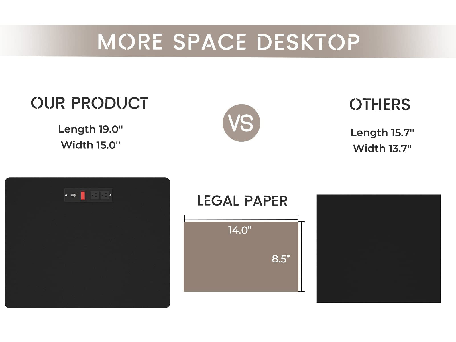 • Charging Station & USB Port: 2 outlets, 2 USB ports for easy charging of devices.